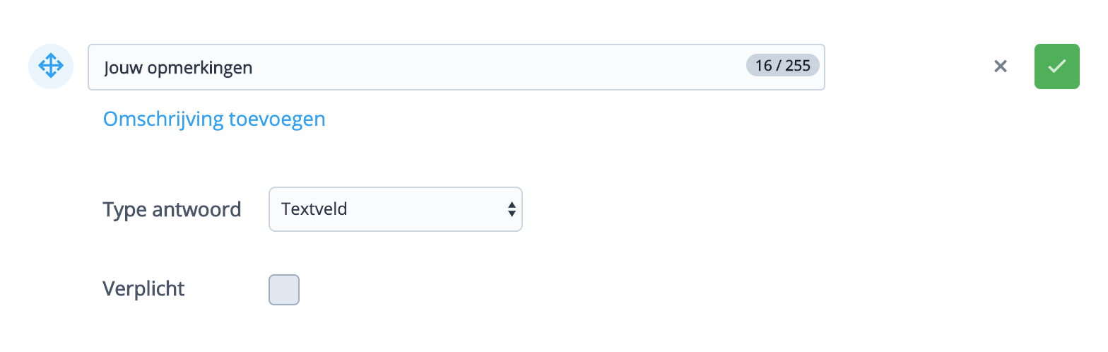 Wanneer je de bezoeker de mogelijkheid wil geven om een stuk tekst achter te laten dan kun je het veldtype textveld gebruiken.